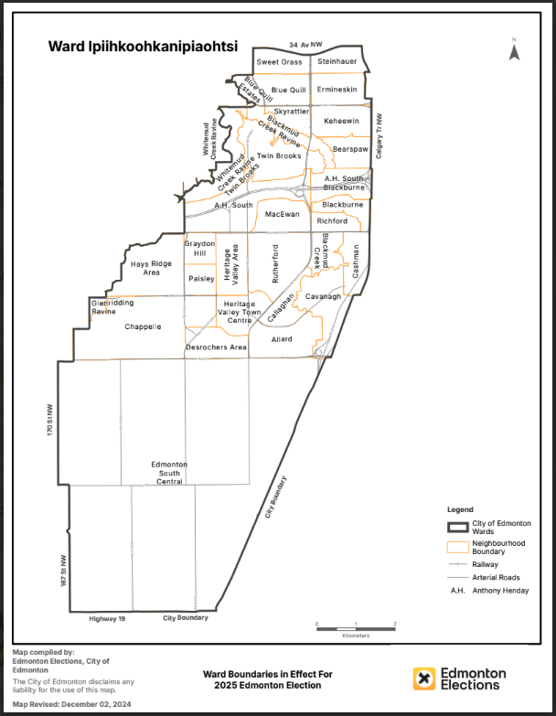 Our ward stretches from 34 Avenue in the north to the city boundary at Highway 19 in the south. It also mostly follows the Whitemud Creek Ravine on the west and Calgary Trail on the east.